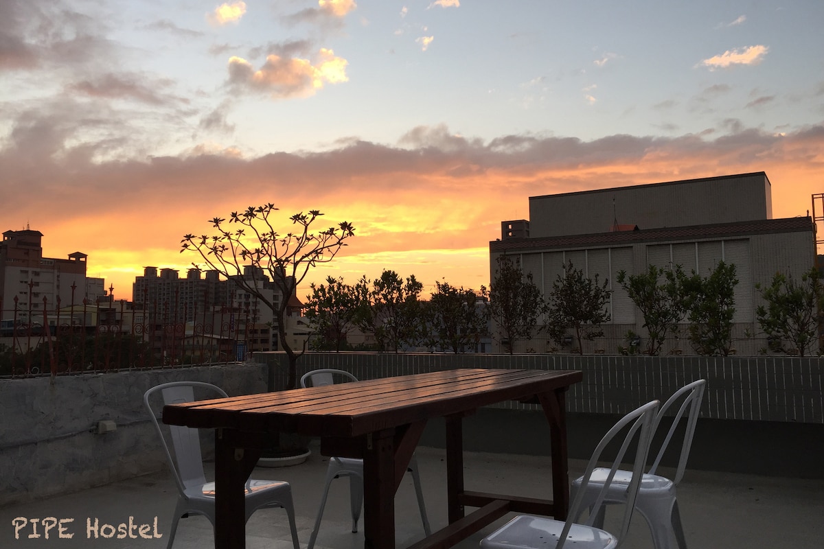 管家Pipe Hostel 位於台灣熱情的港都城市高雄,地處在歷史悠久的鹽埕區。我們步行到捷運站只要一分鐘,方便的位置提供了旅客一個探索高雄絕佳的開始! 頂樓有一大露台,旅人可以迎著海風,欣賞夕陽西下! Welcome to visit Kaohsiung and feel its unique vibe!
