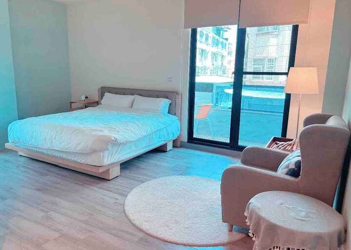 全新美麗島站雙床2-4人房 位於捷運中心點,R10 O6美麗島站出口旁邊,高鐵、台鐵、機場、各方向捷運皆可直達,為高雄交通主要樞紐處,下車後即可抵達住宿地。 提供免費 WiFi,距離六合觀光夜市只有 100 公尺,房子週邊圍繞飲料店、咖啡廳、銀行、7-11、早、午、晚餐、宵夜各式美食店、美妝藥妝店、Ubike⋯生活所需一應俱全 整棟分單層獨立出租,房內有獨立景觀附沙發大露台、兩張標準雙人床,液晶電視,另具備乾濕分離、免治馬桶的私人衛浴。全遮光窗簾、床邊附有插座,以為您提供更舒適的住宿經驗。 整棟單層外空間設有一個共用完整廚房,提供冰箱、IH爐、微波爐,可以在此洗切水果、加熱食物及簡單煮食,讓美食有更多選擇體驗方式。 ⚠️露台玻璃欄杆無任何遮蔽,恕無法接待12歲以下孩童,為您住宿安全,帶有孩童旅客請另外訊息諮詢其他適合房源喔