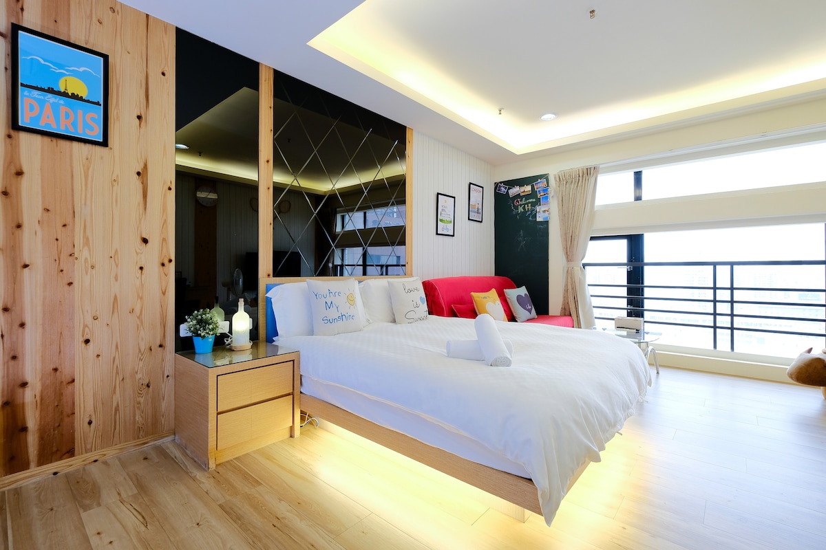 This sweet home is along the love river, which is the most romantic walking path in kaohsiung. It's a convenient place, near by convenient store 711, sizihwan, art pier 2, Luhe night market, 5 minutes walk from Yanchengpu station (orange line O2) Lots of famous taiwanese food hidden in small lanes. Just by walking in between you can experience the most exotic food. great location, great food around, and quiet area. We provide Netflix HD. We provide coffee, tea and cereal (self service)