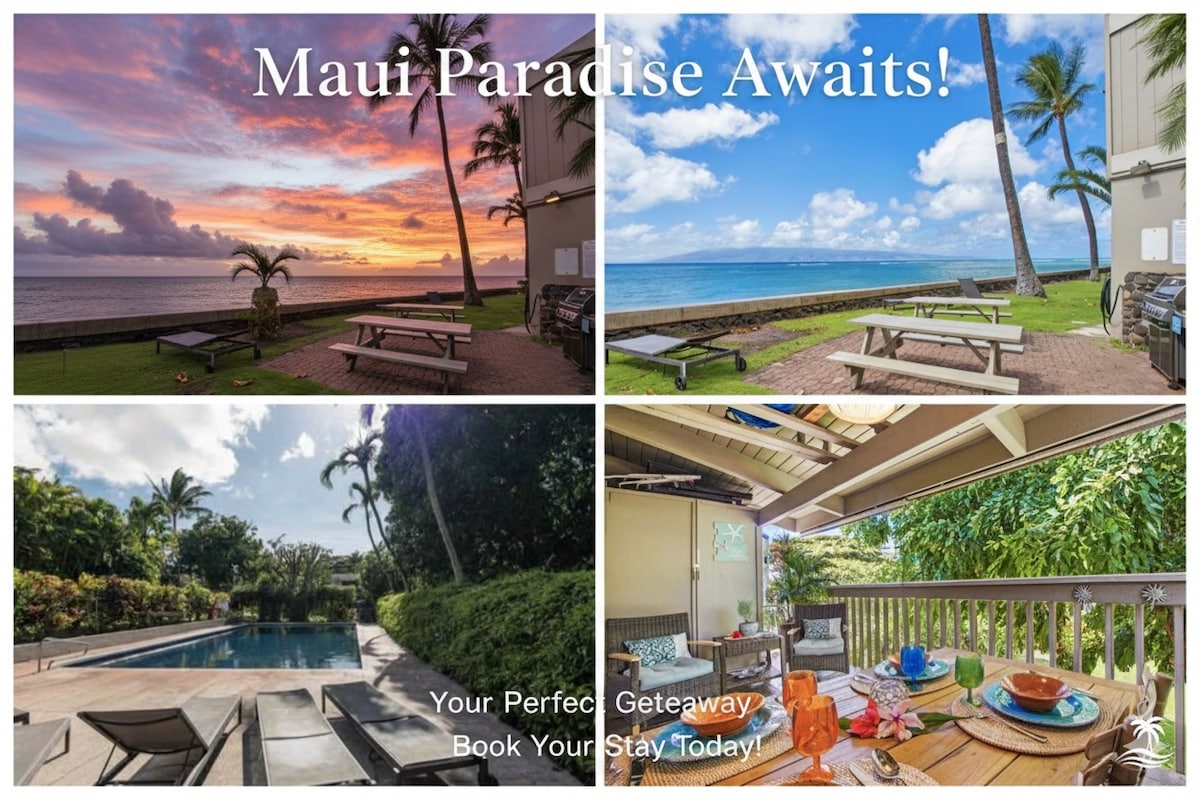 We are a LEGAL Short Term Rental. If STRs are banned, we will refund your reservation money. We are 6 miles north of the fire. Our beaches, sunsets & ocean are still amazing. Remodeled Large Studio w/ AC. Sleep 30' from the ocean to the sound of waves! PANORAMIC VIEWS/SUNSETS! 2 Relaxing Oceanside POOLS & hot tub. Fully-equipped kitchen. Walk-in rain shower. GREAT LOCATION! Close to Kaanapali, Kapalua, groceries, restaurants, beaches. TURTLES love this area. Free Parking. No Resort Fees.