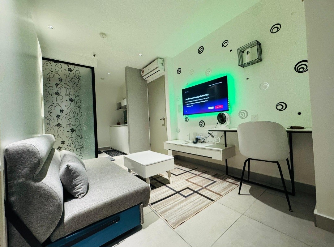 Designer Suite for Savvy Business Traveller to Oasis Ara Damansara Central Business District. Beautifully designed unit that come with 1 bedroom and 1 study room. You will find the unit come with elegant living room with practical dining and kitchen area. The study area are special addition to our unit and it was designed specifically for business traveller needs. Coupled with High Speed Internet, your connectivity to the internet are assured a smooth browsing experience.