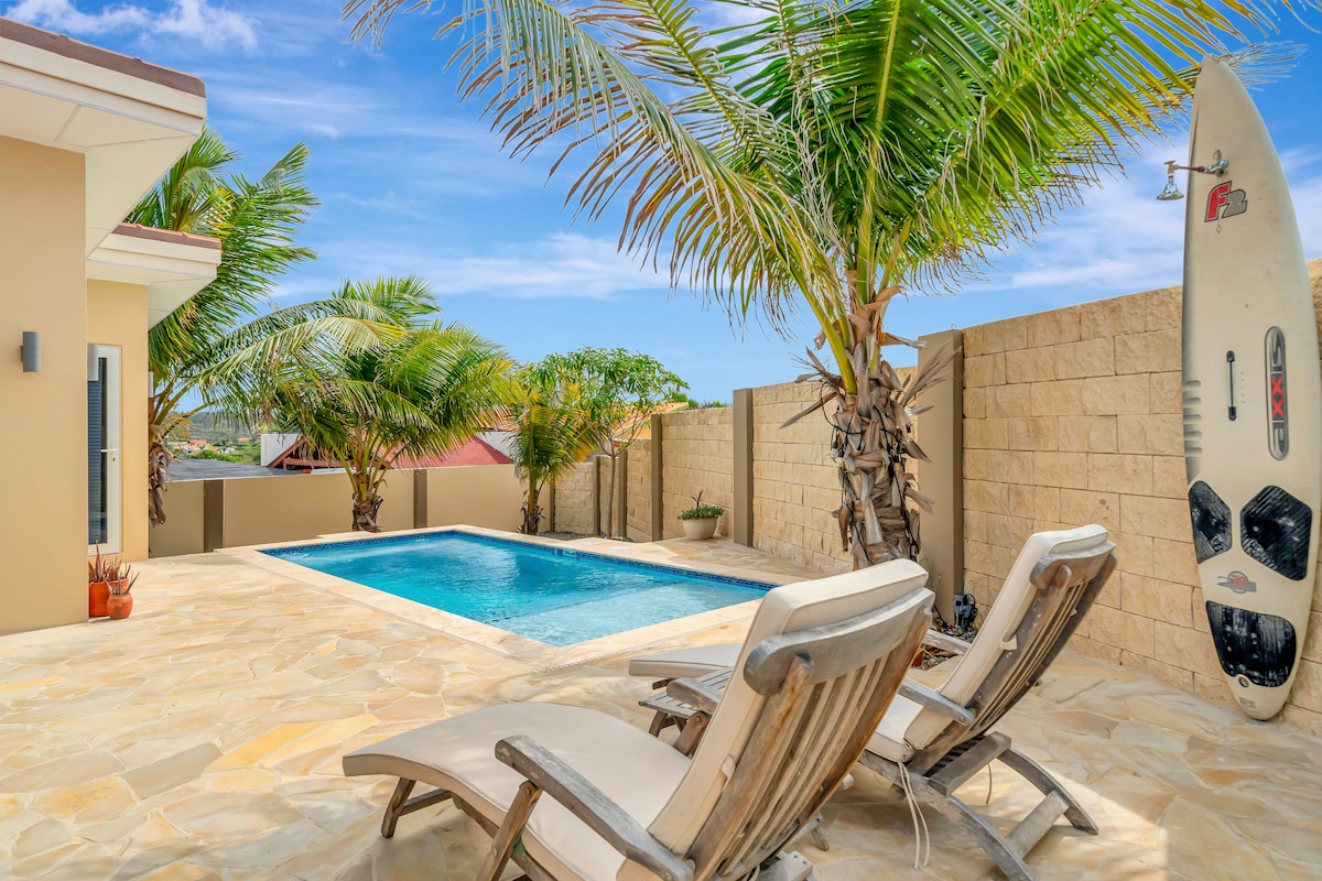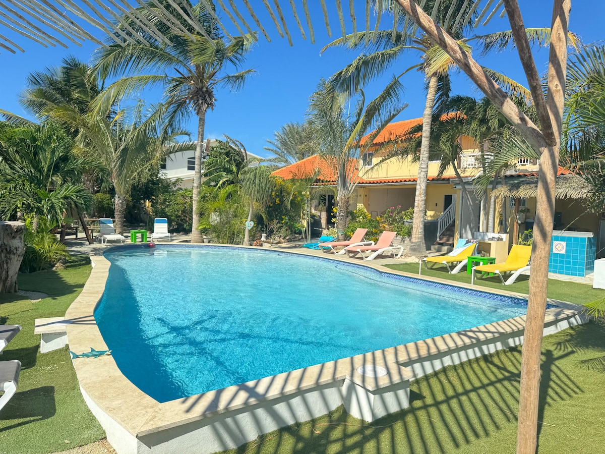 Escape to our Mediterranean villa and enjoy the white sands of Aruba the happy island, stay in a luxury apartment with the best comforts of a Caribbean home, entrance from the garden area, relax in the pool and enjoy our tropical garden in the hammock under the palms. PERFECT LOCATION *Palm Beach 400 meters walking *Noord supermarket 350 meters walking *Just a 4-minute drive from the restaurants, nightclubs and shopping. ~CHILDREN ARE WELCOME