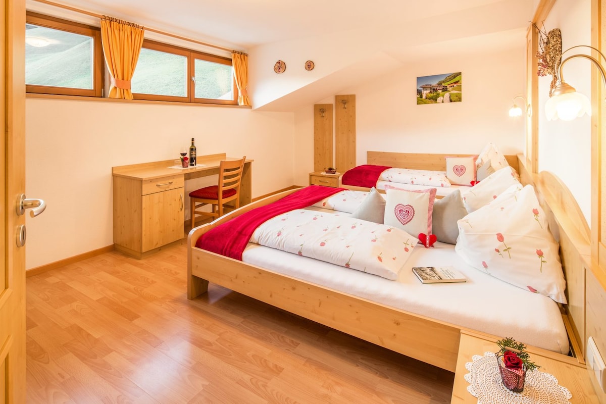 Modern eingerichtete Unterkunft auf 120 m² mit 4 Zimmern für bis zu 12 Personen (3 Kingsize-Betten, 6 Einzelbetten). Drei Zimmer mit Waschbecken, zwei mit Terrasse und Bergblick. Ideal für Familien & Gruppen, die Ruhe und Natur genießen möchten. Wanderwege starten direkt am Haus, Skigebiet nur 15 Min. entfernt. Sauna, Pool & Garten je nach Saison nutzbar. Frühstück inklusive. Parkplatz €5/Nacht, Tourismusabgabe €3/Person/Nacht. Erholung & Aktivurlaub in den Bergen!