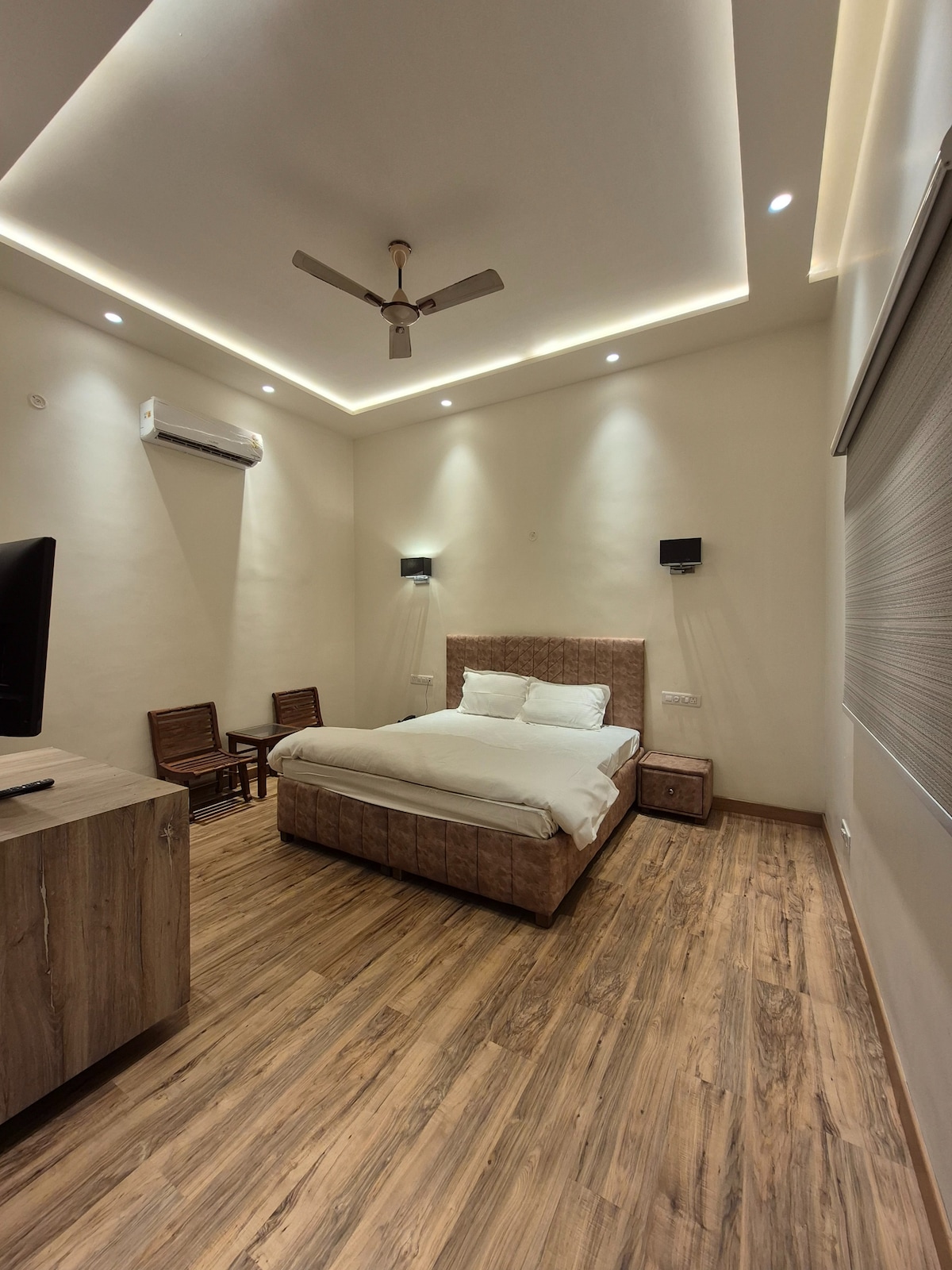The Barn This 5000 sq ft, 4 bedroom/5 bath modern Farmhouse is the most unique property you’ll ever stay in Punjab. Overlooking a beautiful orchard, read a book, listen to the birds chirping, warm yourselves next to a fireplace while relishing a delicious barbecue meal, you will be spoilt for choice..! Stay & celebrate here the most joyous of occasions with your loved ones. You’ll not find a place more serene & luxurious…!!