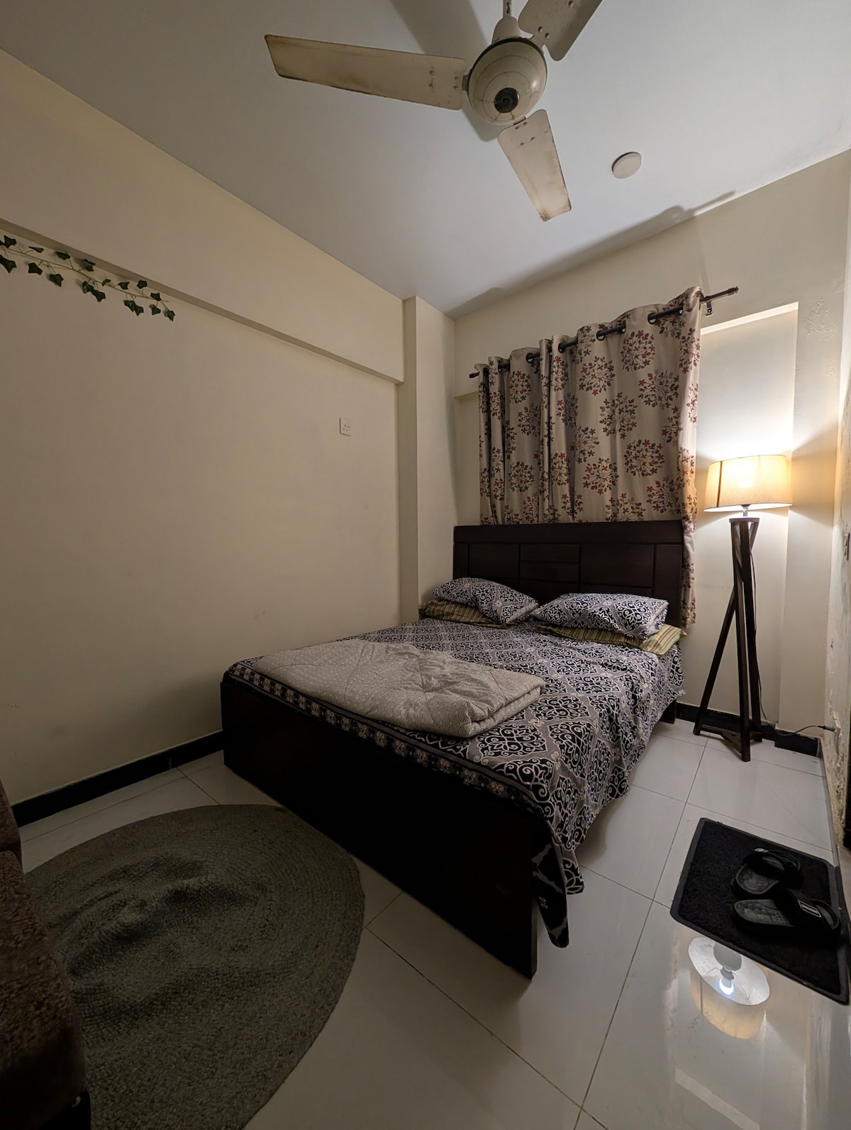 A cozy, fully furnished apartment equipped with all essentials to make you feel at home. Enjoy fresh luxury comforters, soft pillows, and modern amenities for a relaxed stay. Centrally located in Karachi’s most posh and family-friendly area, just 4 minutes from the beach. Surrounded by a variety of restaurants, cafés, shopping malls, and salons. Safe building and neighborhood, perfect for families and long stays.