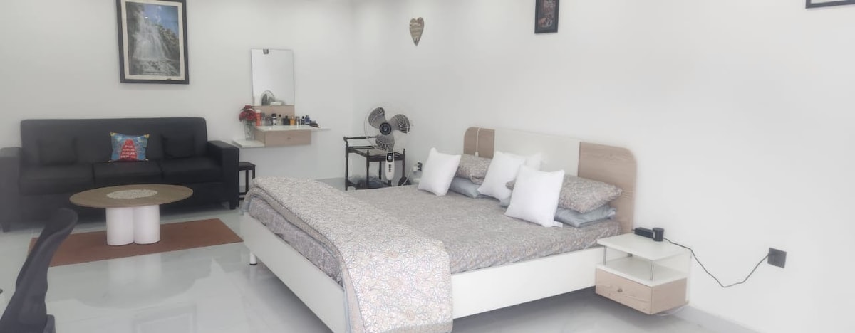 Welcome to your modern 2-bedroom apartment on Main University Road, Scheme 33, Karachi—just 10 minutes from Jinnah International Airport. Best Airbnb in Karachi ✅ 1 AC, 2 bedrooms with comfy king-size beds ✅ Fast Wi-Fi + Smart TV for work or streaming ✅ 24/7 power backup in a secure building ✅ Fully equipped kitchen & dining area ✅ Free parking inside gated premises Perfect for families, business travelers, and long stays who value peace, cleanliness, and quick access to the airport.