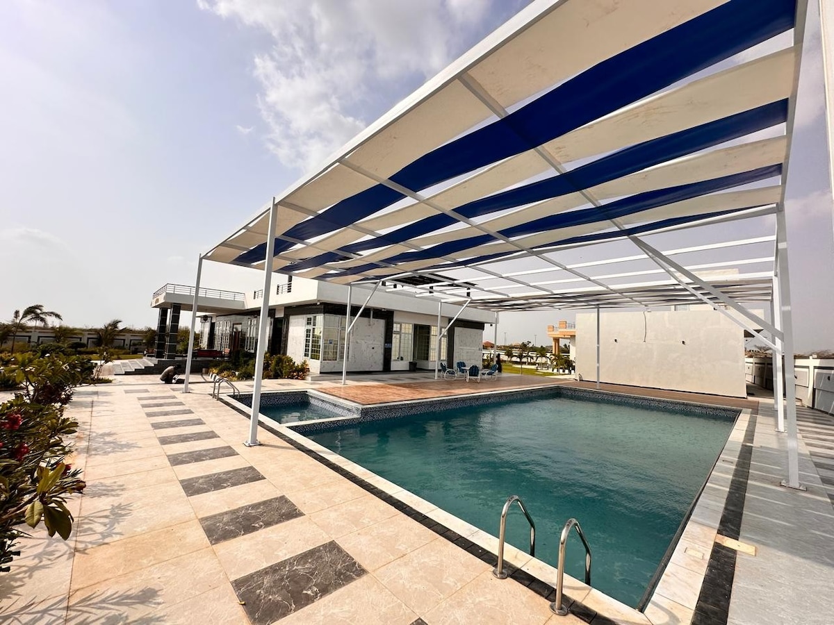 A lush green private resort with luxury interior and international standards swimming pool within a secured boundary wall society. We're offering 7 furnished bedrooms, swimming pool indoor/outdoor play area, private kitchen and on-site restaurant along with the all modern amenities. Our resort located within the city in a peaceful and secured environment where we're offering international standards facilities.