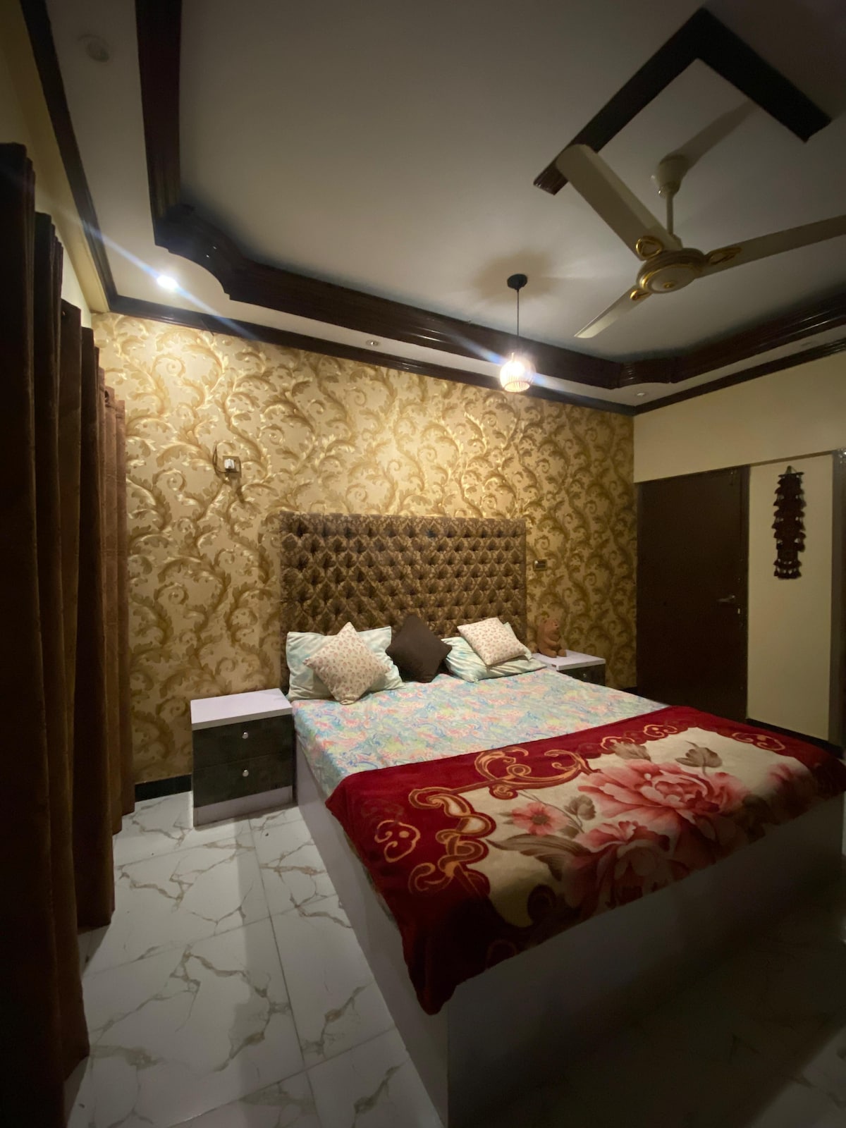 Welcome to our spacious 200 sq. yd. first-floor home featuring 2 air-conditioned bedrooms with attached bathrooms, a cozy living room, a lounge with a dining table and TV wall, a fully equipped kitchen, and a balcony with a serene view. Located in Gulshan-e-Iqbal Block 7, you'll find food chains, parks, mosques, supermarkets, medical stores, and bakeries nearby. 24/7 caretaker service ensures a seamless stay. Perfect for families or business travellers! Regards Faisal Akhlaq