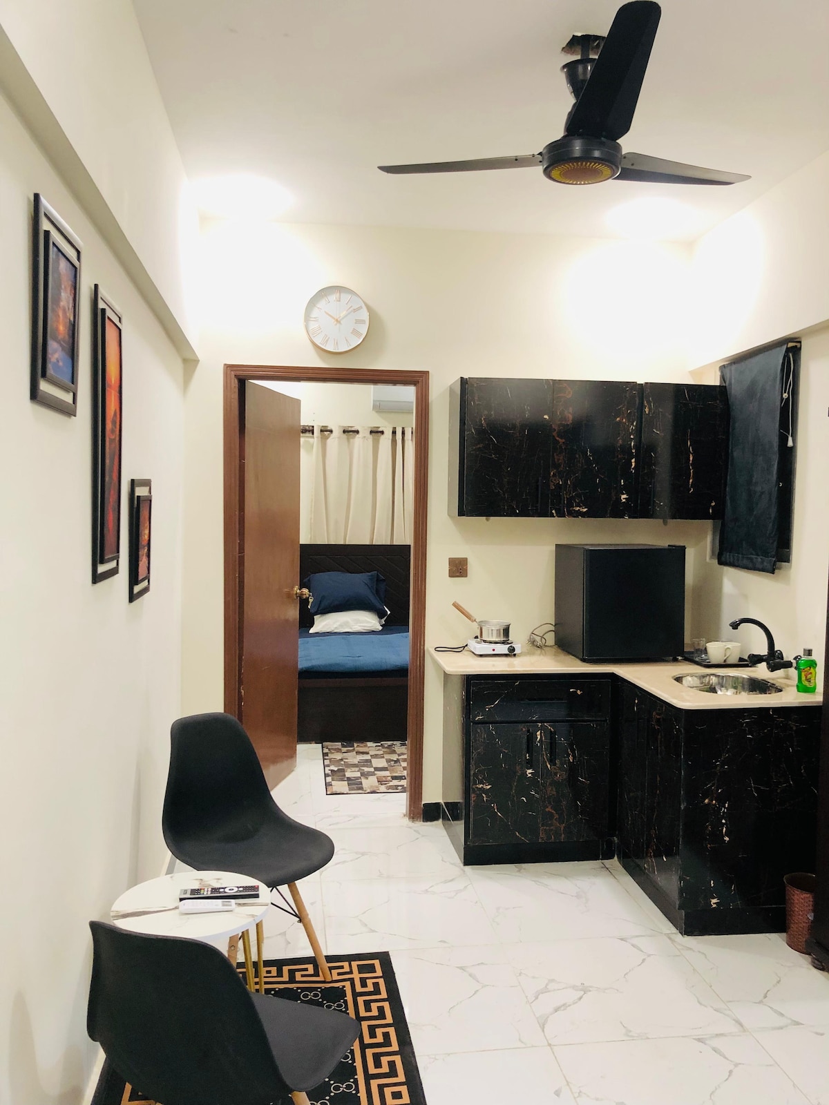 Welcome to our 1 BHK Apartment which is Situated in the heart of DHA Phase 6, one of Karachi's most upscale and secure neighborhoods. • Easy access to Clifton Beach🏝️ (2-3 mins drive). • Surrounded by popular commercial zones: Bukhari, Shahbaz & Nishat Commercial. • Close to trendy cafés☕️, restaurants🍽️, and shopping outlets.👗 • Nearby supermarkets, banks, and pharmacies for convenience. • Business travelers seeking a quiet location.📈 • 24/7 security.👮🏻♀️ •Secure parking space.