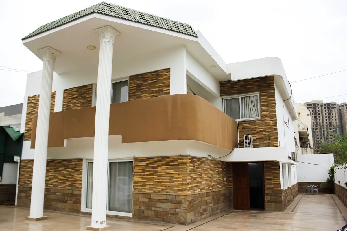 Nestled in the heart of Karachi, our guest house offers a tranquil retreat amidst the city's bustle. Enjoy exclusive access to our beautiful outdoor area, a rare feature in Karachi Airbnbs, perfect for relaxation & escape. Top Perks- • Delicious complimentary breakfast to start your day • Travel guide to explore Karachi like a local • Proximity to malls, restaurants, universities, fitness centers, ATMs, & hospitals • Safe & secure accommodation with a home-like atmosphere Transfer from Airport