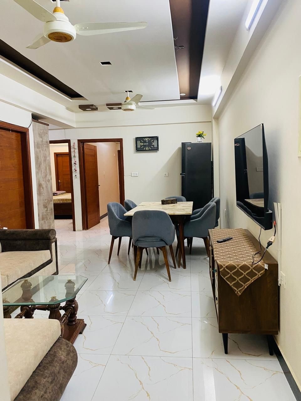 Welcome to your serene escape at Chapal Courtyard! This stylish 2-bedroom apartment offers a perfect blend of comfort and convenience. Spacious living area with modern furnishings. Fully equipped kitchen for your culinary adventures. Cozy Bedrooms for peaceful sleep. Private Balcony to enjoy morning coffee or evening sunsets. High-speed wifi and TV for entertainment. Relax with the whole family at this peaceful place to stay.
