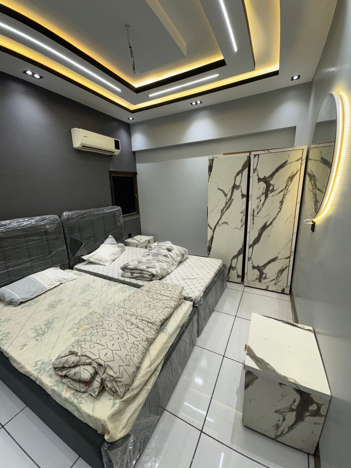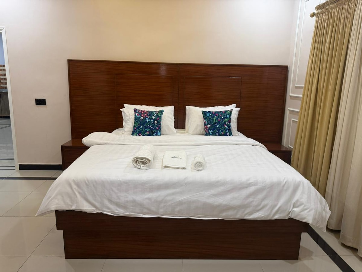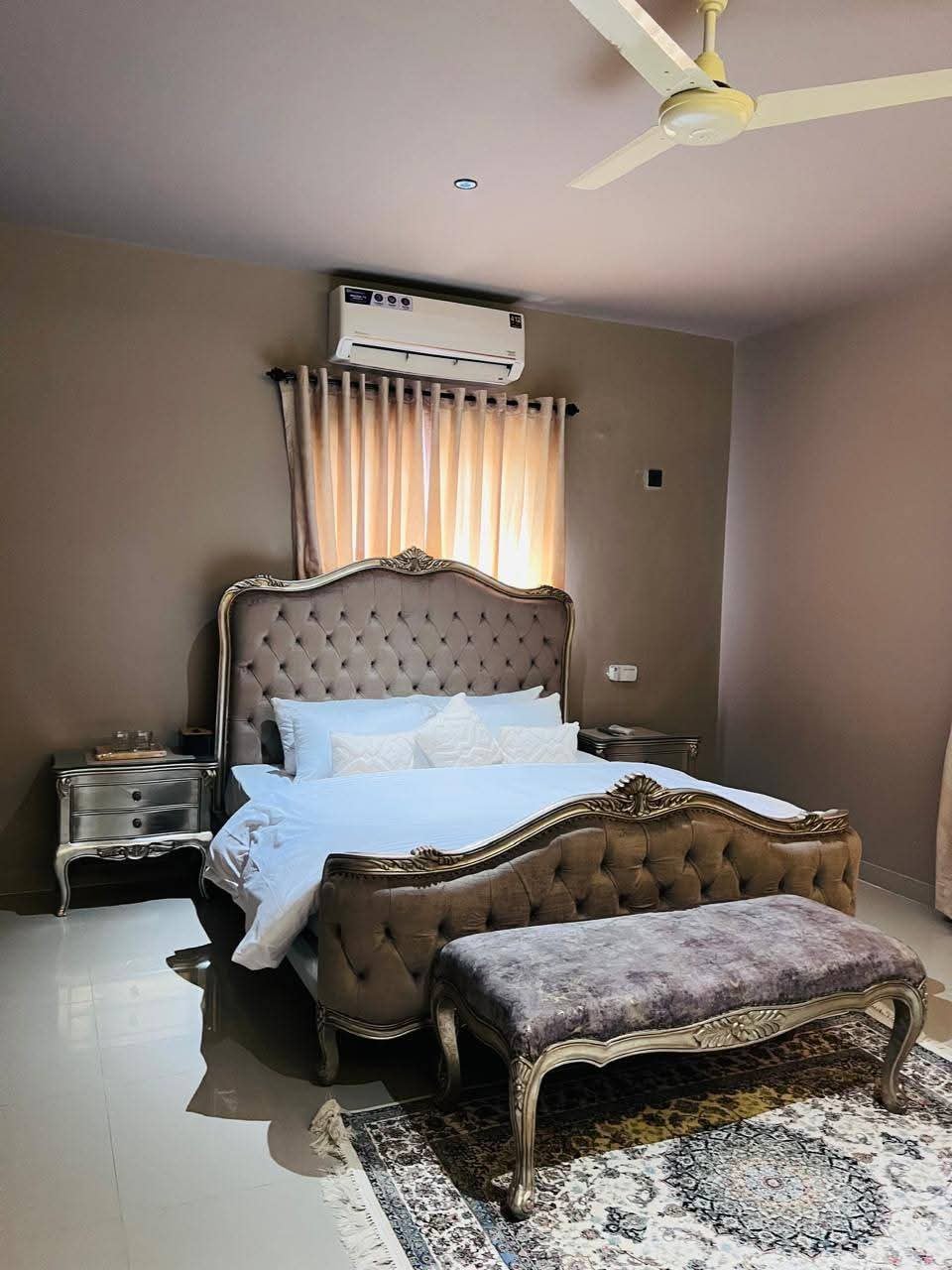 This is my personal lavish & spacious 02 bedrooms 10 marlas house with attached bathroom. It has one king plus size bed in Bedroom No. 1. One queen size bed with one single bed in Bedroom No. 2. Two extra mattresses which can easily accommodate a total of 07 people. This house has a drawing room area, a gym, a sitting area for 10 people, a dining table, and an open kitchen. The whole family can feel the coziness of this peaceful place at the time of their stay. Feel home away from home !!