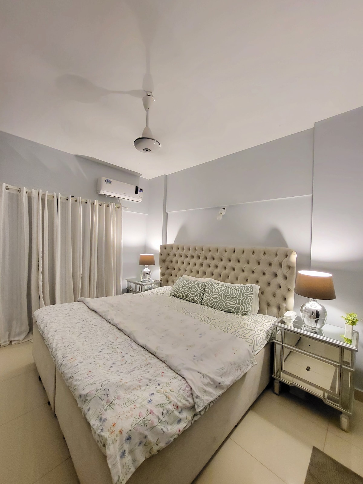 A cozy, fully furnished apartment equipped with all essentials to make you feel at home. Enjoy fresh luxury comforters, soft pillows, and modern amenities for a relaxed stay. Centrally located in Karachi’s most posh and family-friendly area, just 4 minutes from the beach. Surrounded by a variety of restaurants, cafés, shopping malls, and salons. Safe building and neighborhood, perfect for families and long stays.