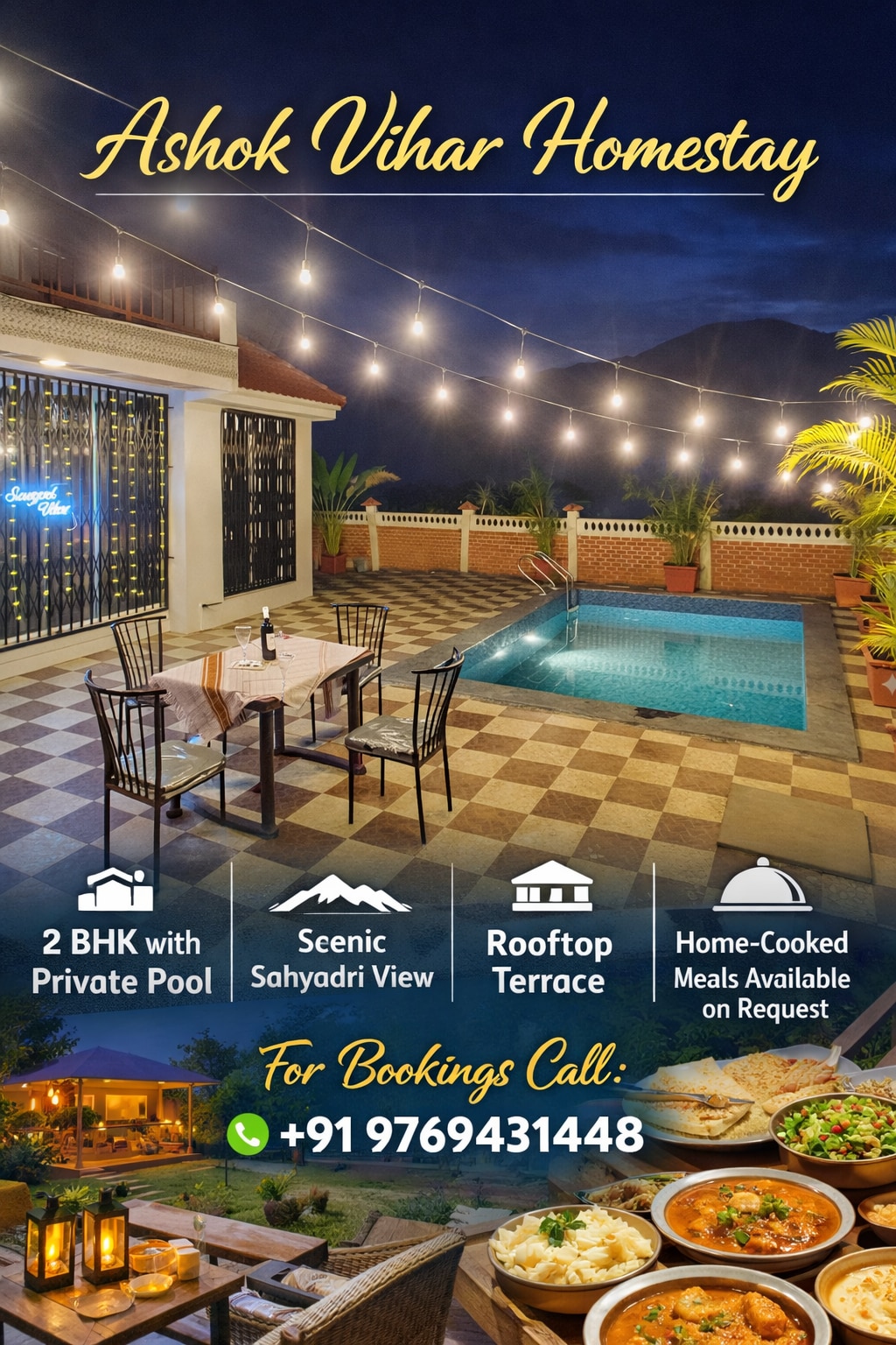'Villa Elsewhere' is a luxurious, beautiful, private pool villa, just 60-90 mins drive from Mumbai. Surrounded by lush green views of fields, hills, and sounds of nature. The Villa has 3 AC en-suite bedrooms, a large AC living room that opens into a private pool and large deck with a Bar. The kitchen is fully equipped where a chef can make delicious meals (*extra charge). It is pet friendly (*extra fee). BOOK to relax in a calm peaceful vibe, for a get together, or to host the best part ever!