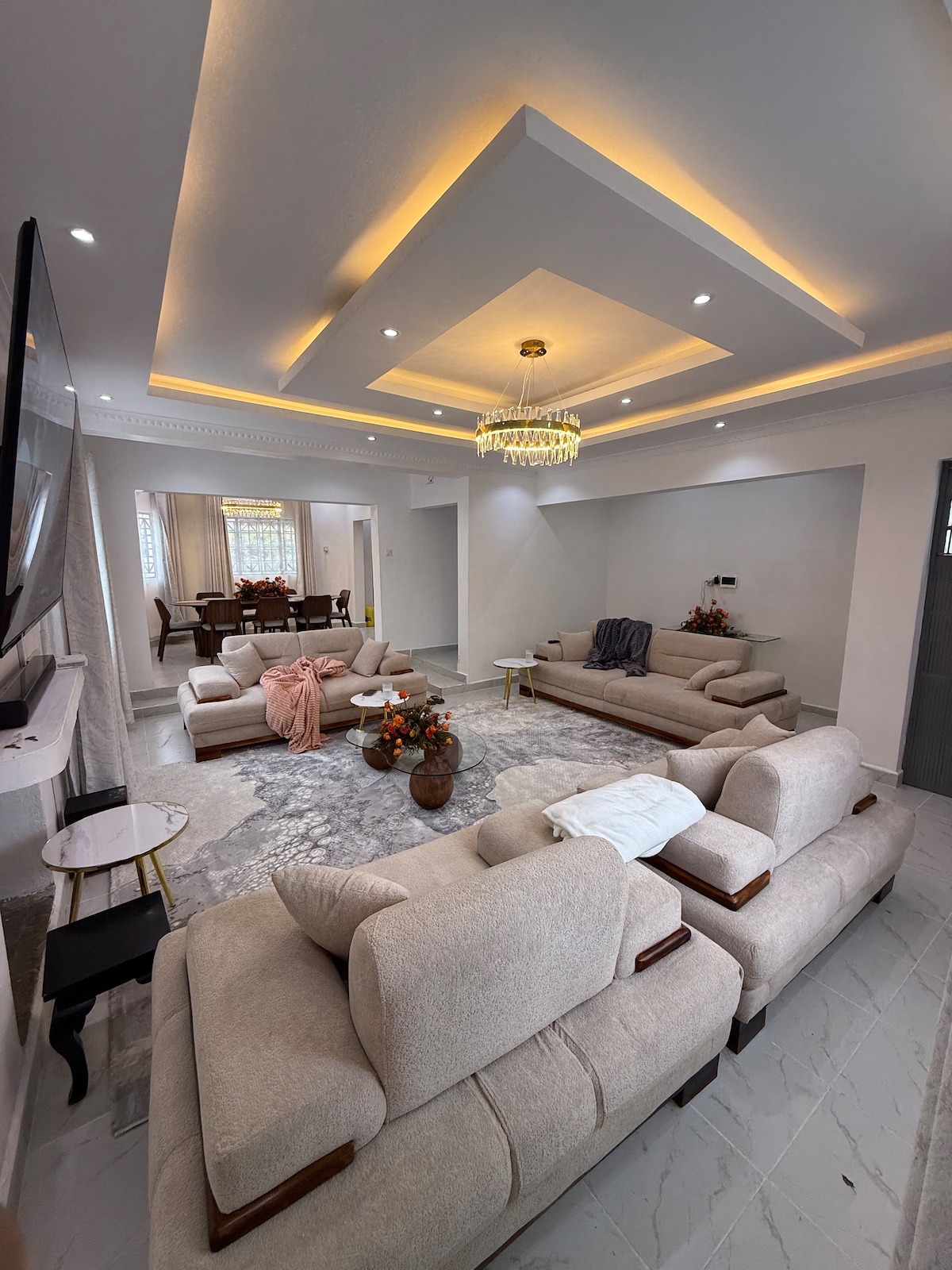 Wake up to birdsong and fresh Naivasha air in this spacious, modern villa tucked in a quiet, secure neighborhood near the lake. Enjoy a bright open‑plan living area with plush sofas, smart TV, elegant dining space, fast Wi‑Fi, fully equipped kitchen, ample parking, and beautiful gardens. Ideal for families, groups, or couples seeking a peaceful yet convenient Naivasha escape.