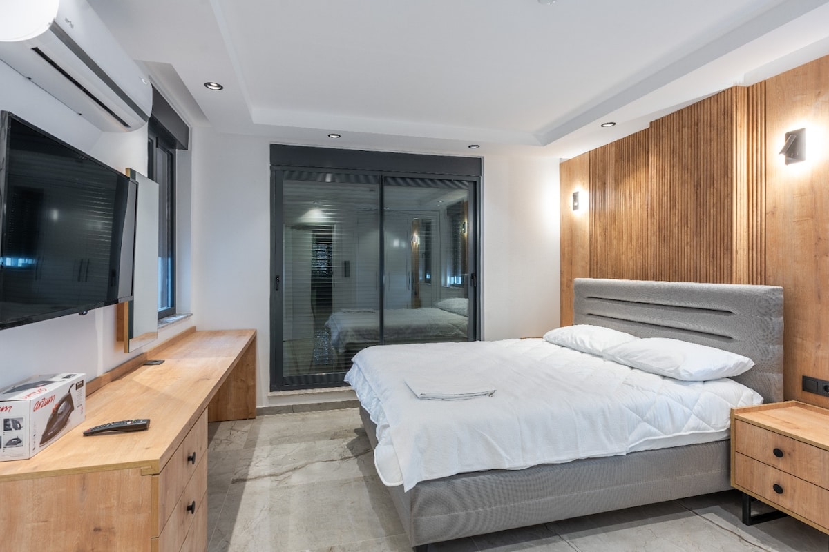 Our villa is located in the magnificent holiday region of Antalya, Kalkan. The minimum rental period in our rental villa, which reflects the ultra-luxury life quality, is determined as 3 nights. Minimum 5 nights after June. There is 1 bathroom for 2 guests in the building, the bedroom of which has a jacuzzi. There is 1 bedroom and 1 double bed. The conservative villa, where honeymooners can have a quiet and quality holiday, is 3.9 km from Kalkan city center and 3.5 km from the beach (Kaputaş3km)