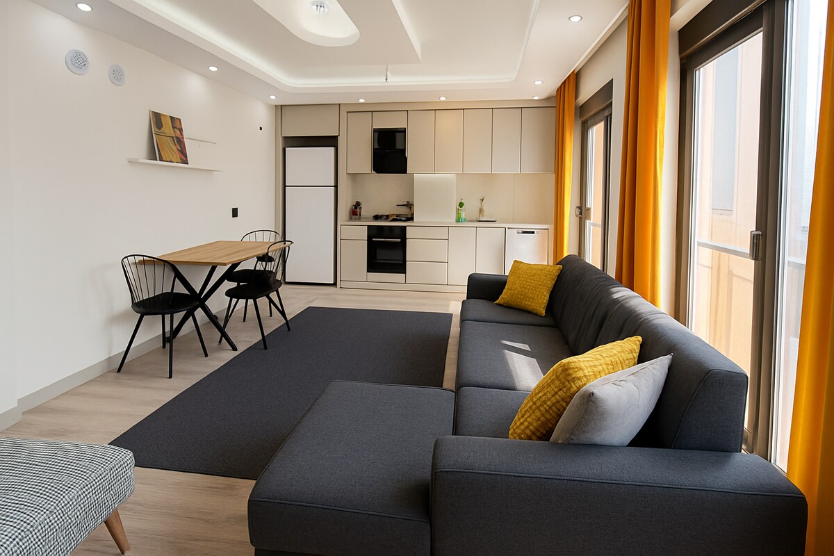 Modern ve yeni dairede kentin tadını çıkarın. ( online çalışanlar için mükemmel bir mekan )