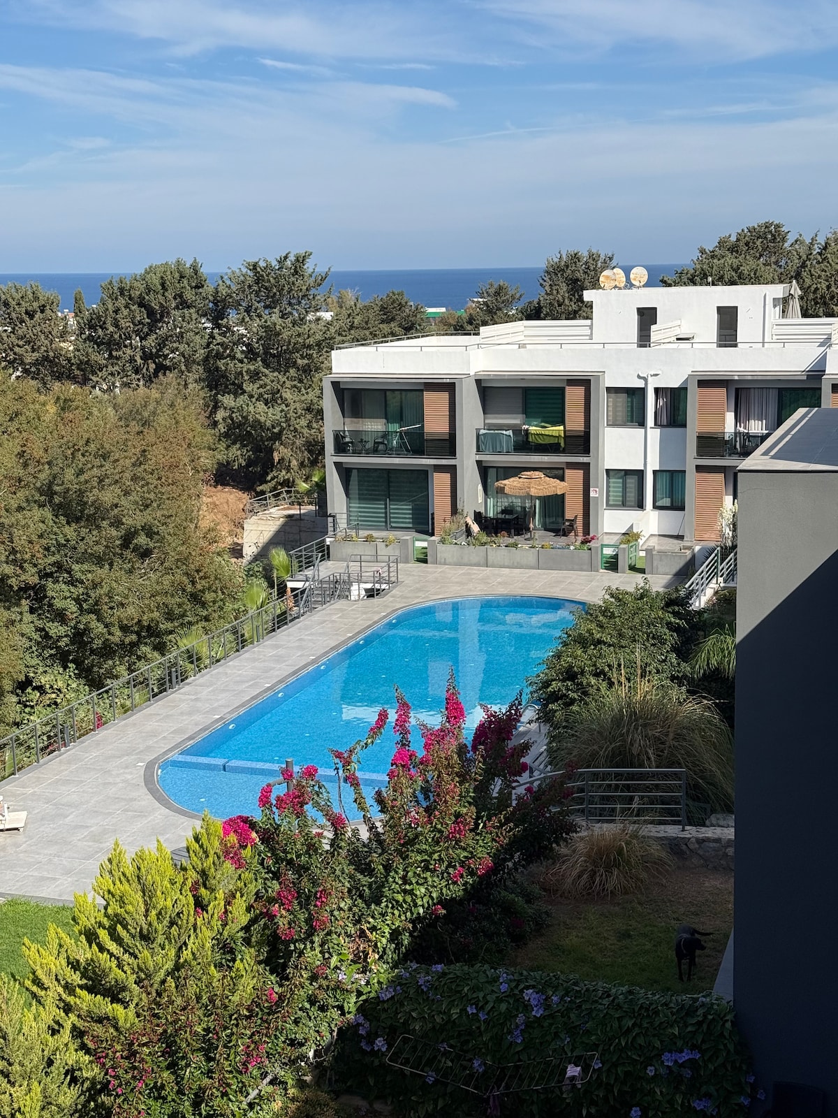 Modern 1+1 apartment on the 4th floor with stunning Beşparmak Mountain views. Features a fully equipped kitchen, AC, Smart TV, Wi-Fi, and 24/7 hot water. Located just 2 km from Ezic Premier, with a market across the street and a gym right next door. Perfect blend of comfort, convenience, and scenery.