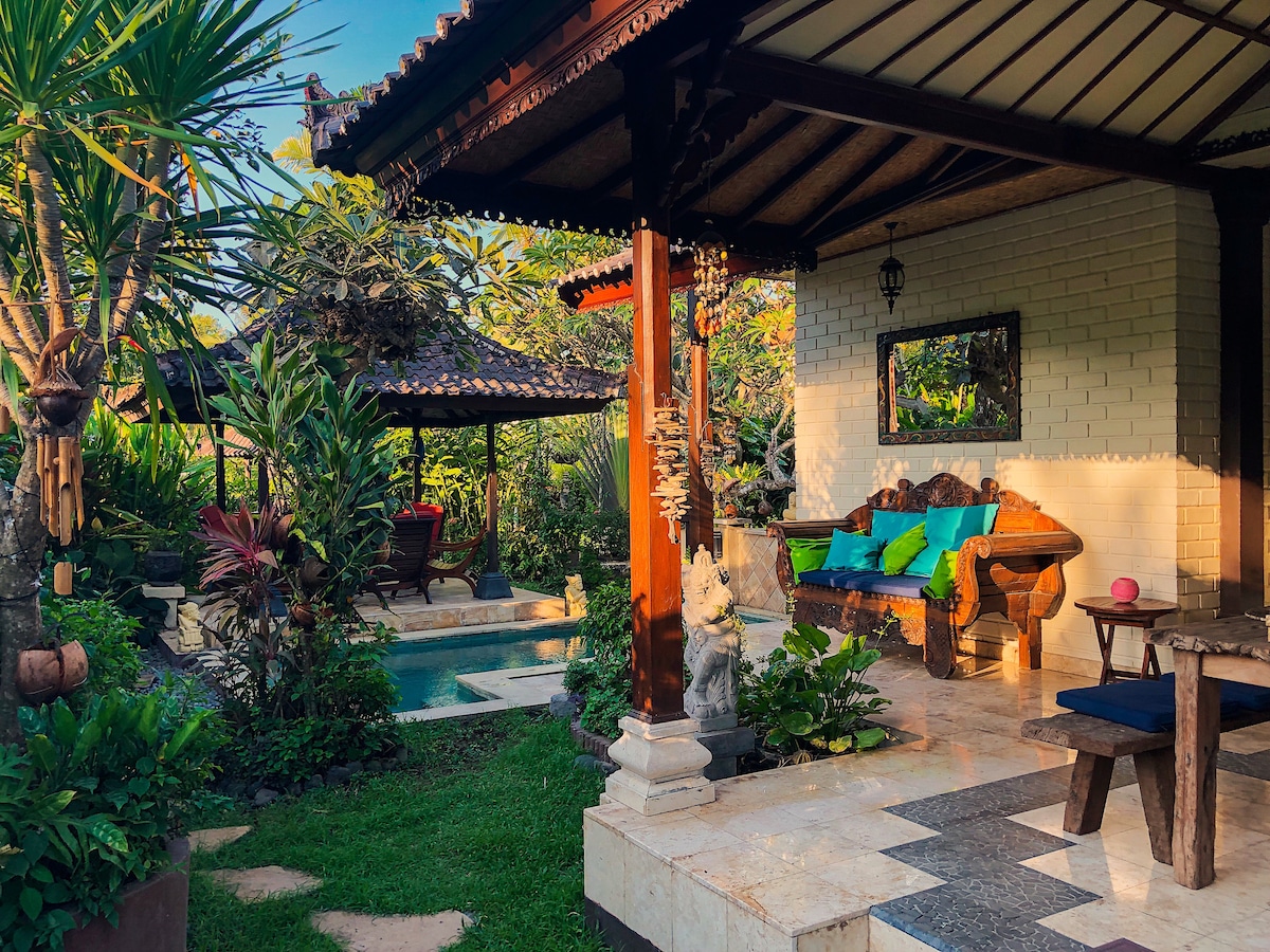 Villa Sasoon - Oasis with 2 bungalows, soaking tub, outdoor shower, concierge services & beach access! ★ "In one word: perfect! ⭐️⭐️⭐️⭐️." ☞ Private backyard + pool + sun loungers ☞ Patio w/ covered outdoor dining ☞ Daily housekeeping ☞ Breakfast (Additional charge) ☞ Fully equipped + stocked kitchen ☞ 55” smart TV + 250 Mbps wifi ☞ Parking → driveway (3 cars) ☞ Beach access (100m) ☞ Airport transfer* 3 mins → Candidasa Beach ⛱ 3 mins → DT Candidasa (cafes, dining, shopping)