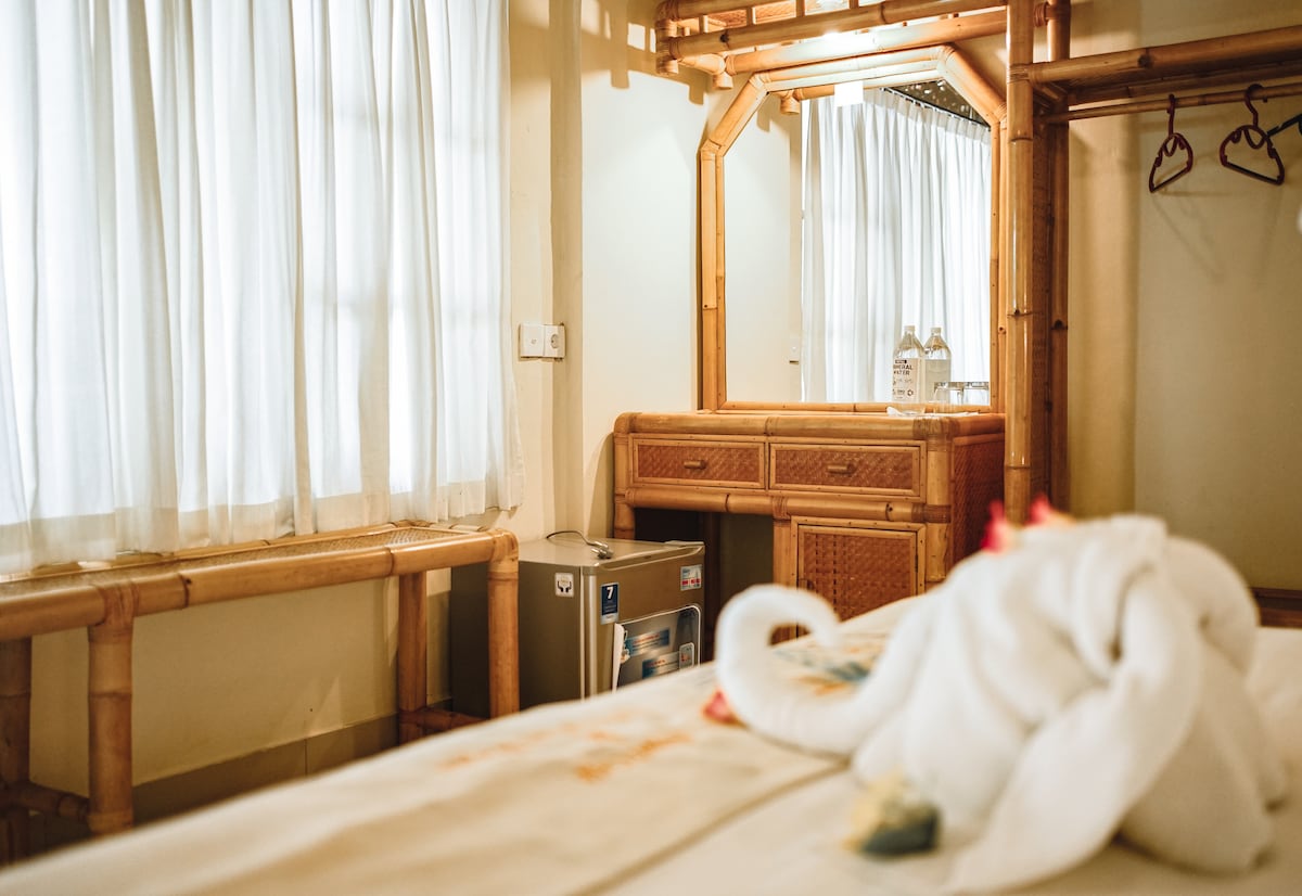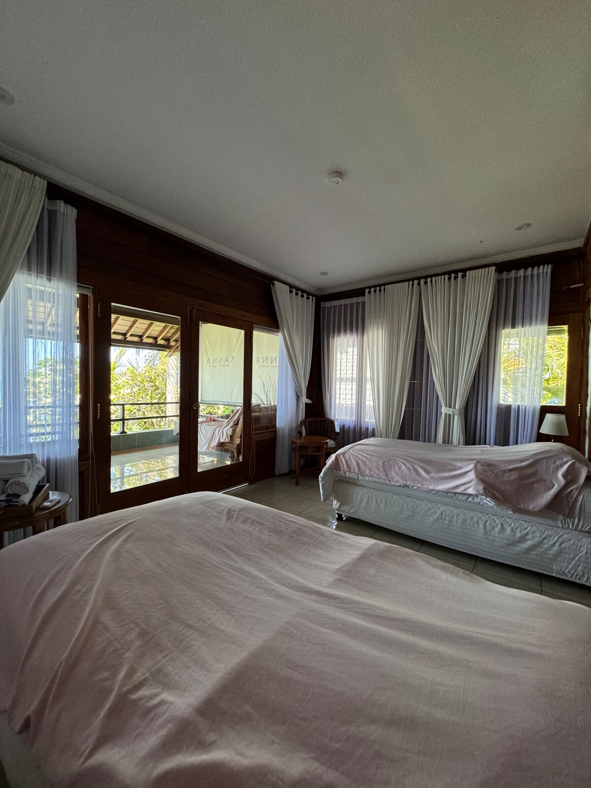 This spacious bedroom has a private kitchen and bathroom with hot water, Air conditioning, Fan, and WIFI. The breakfast is included in the price with illimited tea and coffee during breakfast hours. The room is well located in central Amed, a 2 min walk from the beach, close to restaurants, bars, minimarkets, and snorkeling spots. Don't miss our rooftop with the amazing view of Gunung Agung! Join us for diving with our Dive Shop Ocean Tree Amed!