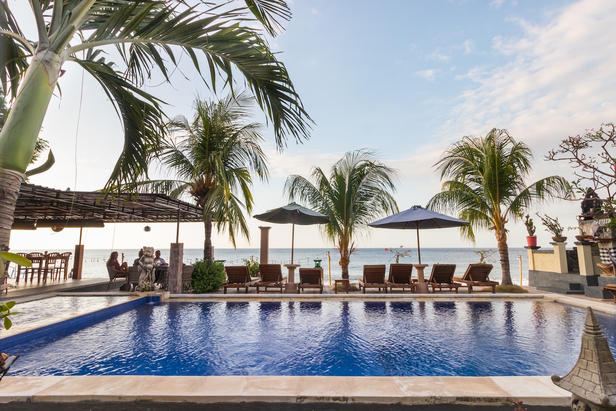 Escape the busy city tourist destinations of the South/West of the island and visit East Bali for some true relaxation. Our resort is located on the beach in Amed & features ocean & Mt Agung views. Guests enjoy use of the pool & deckchairs with direct ocean access just a step away. With an excellent on-site restaurant (Teatro), boasting a range of dishes, including fresh pastas; plus a spa & dive centre on the grounds, sit back, take a sip of your drink & watch the sun set behind the mountains.