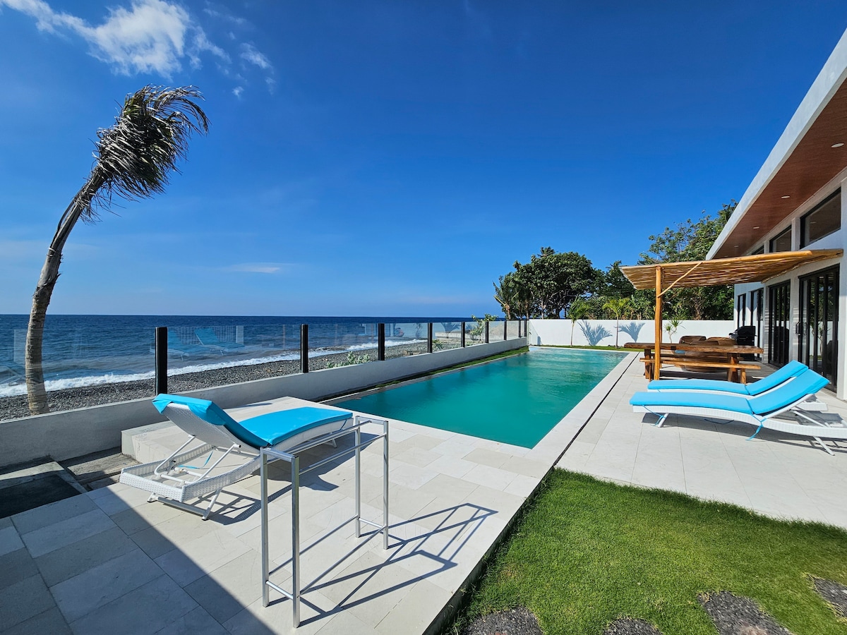 Your very own Beach House with a pool . Perfect for a family vacation, quality time with a group, or a romantic getaway. 3 bedrooms with AirCon, 3 baths. Swim in a 10-meter long pool, jump in the ocean. Some of the best diving & snorkeling on the coast just out the gate. Recline & rejuvenate in a variety of delightful private spaces, the bale with cushions & pergola and pool with sunbeds&hammocks. The owner/chef is renowned for having the Best Balinese food in Bali, served to you by the ocean.