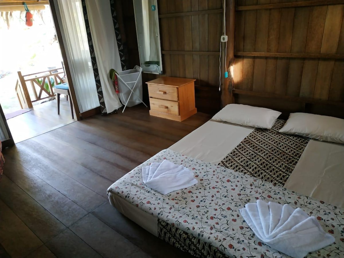 ⭐️ A Bamboo Tiny House w/ 6 beds, 1 private area, 1 bamboo musholla, 2 toilet (sit and squad type) and 2 cabanas