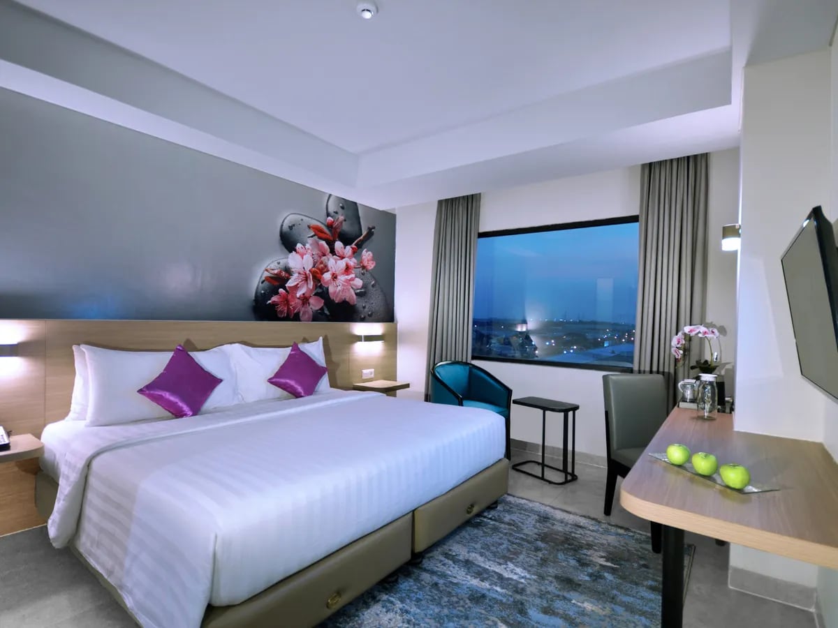 Enjoy a comfortable stay in our Indonesia Standard Double Room at Hotel Pesona Cikarang. Perfect for business and leisure travelers, the room features modern amenities including air conditioning, free Wi-Fi, flat-screen TV, and a private bathroom. Relax with cozy interiors and warm lighting. Located just 10 minutes from Waterbom Park, with easy access to dining and shopping. Sahoor breakfast available during Ramadan for all in-house guests.