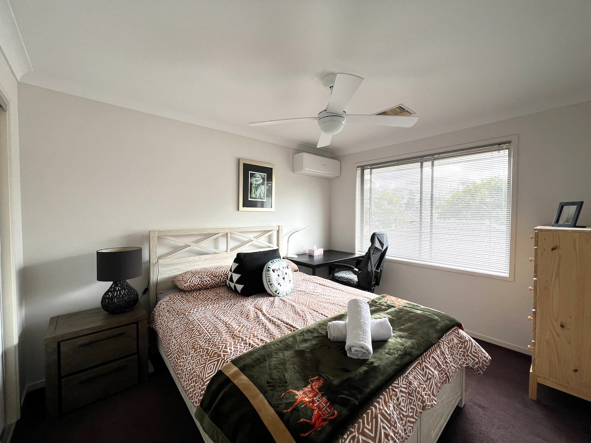 Welcome to your private rest stop. This spacious, self-contained one-bedroom guest suite is nestled on the ground floor of a 1970s high set home in a suburban street. Easy access to the M1, M3, and Logan motorways means exploring the area is a breeze. The kitchen is equipped with basic cooking equipment and there is a laundry. The workspace ensures you can stay productive. Whether you're here for business or personal reasons, you’ll find our space will give you a comfortable place to stay.