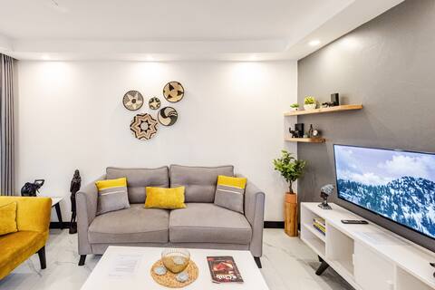 Experience the perfect blend of luxury and comfort in this ultra modern one-bedroom apartment. Enjoy premium amenities, including: - Plush cashmere blend sofas for ultimate comfort - A king-size wingback bed with fine cotton bedding and a soft spring memory foam mattress for restful sleep - A QLED TCL TV with free Netflix, premium YouTube, and Showmax for endless entertainment - A fully equipped kitchen featuring a Samsung fridge, LG microwave, and Mika coffee maker for your convenience