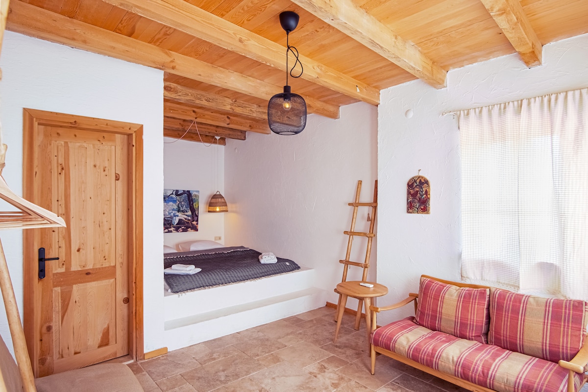 A fresh renovation took place in 2022. Brand new kitchen and bathroom, brand new furniture and new design of the space. The house includes the living room which is also the dining room and the two sofas are sofa beds. Next room, is the kitchen and master bedroom and bathroom. The gem of the house is the balcony with an amazing view.