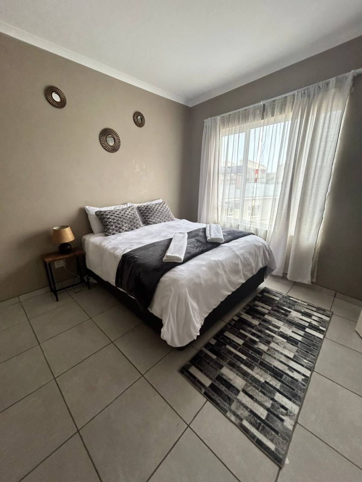 Gather your family or friends in our spacious 3-bedroom Slate Suite, designed with a calming blue theme and located on the ground floor. Perfect for group stays, this fully furnished suite features a modern kitchen, open-plan lounge, private bathrooms, and comfortable bedrooms for everyone. Enjoy free Wi-Fi, secure parking, laundry services, and a private braai area, all set in a peaceful natural environment. Close to town yet tucked away for comfort, privacy, and relaxation.