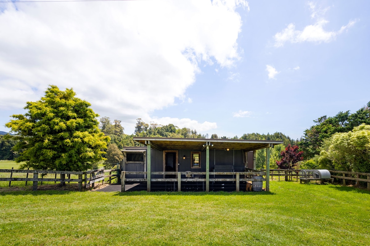 A Treehouse for Two — Hidden in the Pines - Recently fully renovated - new pictures to come! Just 4km from Whale Bay and 12km from Raglan, this tiny off-grid treehouse is a place to slow down and reconnect. Set on our 35-acre property, it offers sweeping views of pasture, native bush, and the ocean. Soak in the outdoor bath beneath the stars. No stress - just you, the trees, and time to dream.