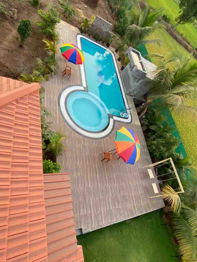 Experience a serene retreat, a picturesque 3-BR 4-Bath farmhouse in Nasrapur, Karjat. This haven, adorned by lush greenery, features a pool, a flowing river & featured in Hotelier India. Crafted with love, the rustic design offers spacious, open areas, inviting a sense of freedom & communion with nature—an ideal escape for a city detox. It stands out for commitment to environmental sustainability. This villa can sleep 15 guests overnight & 30 guests for the day making it ideal for parties.