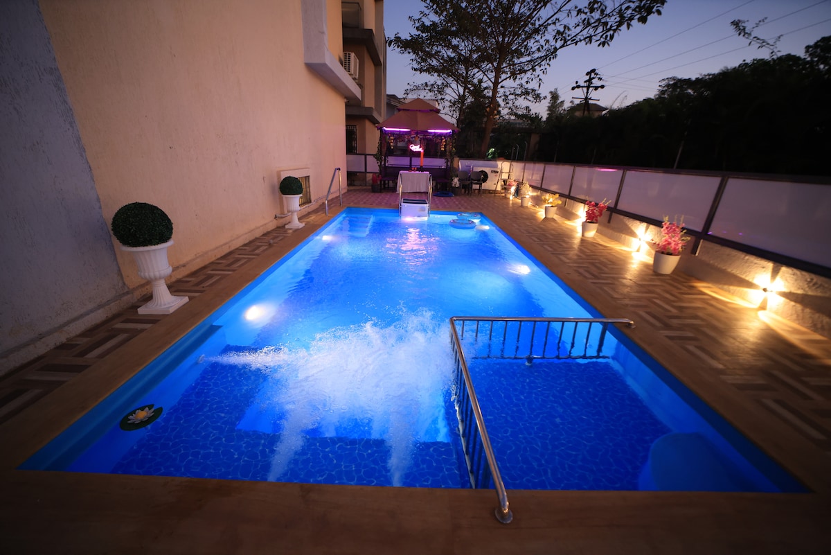 Experience the ultimate getaway at our luxurious 5-bedroom villa, nestled in a prime location of Lonavala. Spread across an expansive private plot, this modern retreat features stylish interiors, a dedicated entertainment zone, a massive swimming pool with an attached baby pool and jacuzzi, and a beautifully landscaped lawn — perfect for relaxing or hosting special moments. With spacious surroundings and parking for up to 8 cars, this villa offers privacy, comfort, and unmatched grandeur.