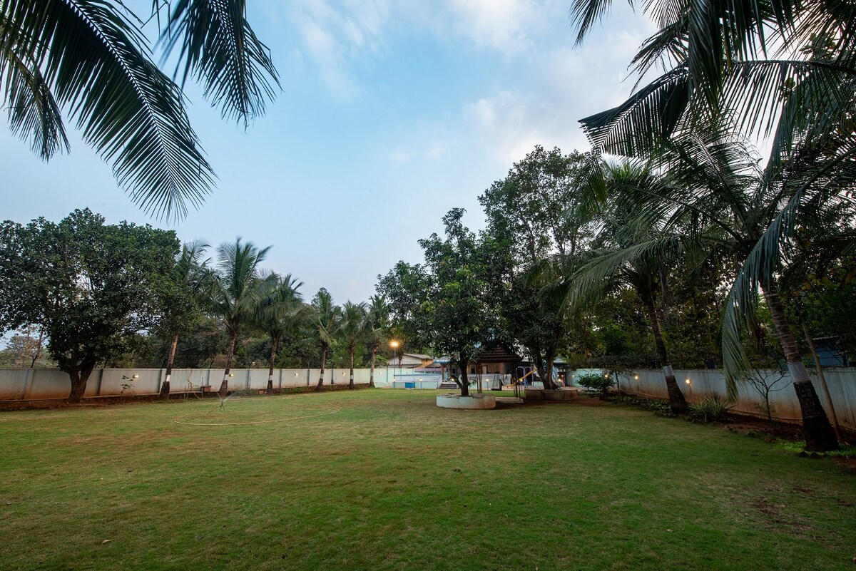 Nakshatra Villa by Nehdal is an elegant 6-BHK private villa set amidst Karjat’s lush mountains, offering sweeping views of misty hills, seasonal waterfalls, and windmills. Your stay includes complimentary breakfast. Other meals, high tea, snacks, and BBQ can be arranged at an additional cost. Ideal for families and couples, the villa features spacious air-conditioned rooms, a private pool, jacuzzi, fully equipped kitchen, Wi-Fi, smart TV, two caretakers, and secure parking. Pet-friendly.
