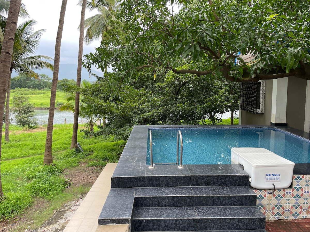 Welcome to Lakeview Homestay! A perfect getaway for nature lovers who enjoy the simplicity of *home-away-from-home* A 400 sq.ft hall with a squeaky clean bathroom. Our homestay is surrounded by the native forest, overlooking the wild valley filled with flora and fauna. The property faces *Mulshi Backwaters* which can be seen through the porch, the swimming pool, windows, and even the parking! Welcoming all nature enthusiasts to visit our homestay and feel the peace this place can offer