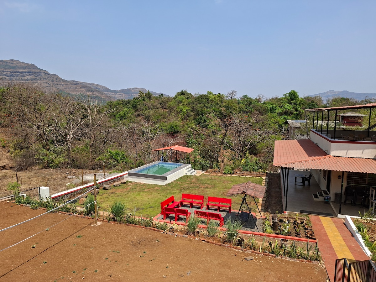 Red Tree Villa is designed for all seasons A premium retreat near Karjat close to Mumbai & Pune it offers a lap pool to cool off in summers a lush lawn for rain dances and waterfall and river stream views during the monsoon right from your bed.The highlight is a scenic trek to Bhimashankar Mandir one of the 12 Jyotirlingas in India. In winter unwind under the stars on our open terrace with sky deck. Whether you’re looking for peace celebration or nature Red Tree Villa is your perfect getaway.