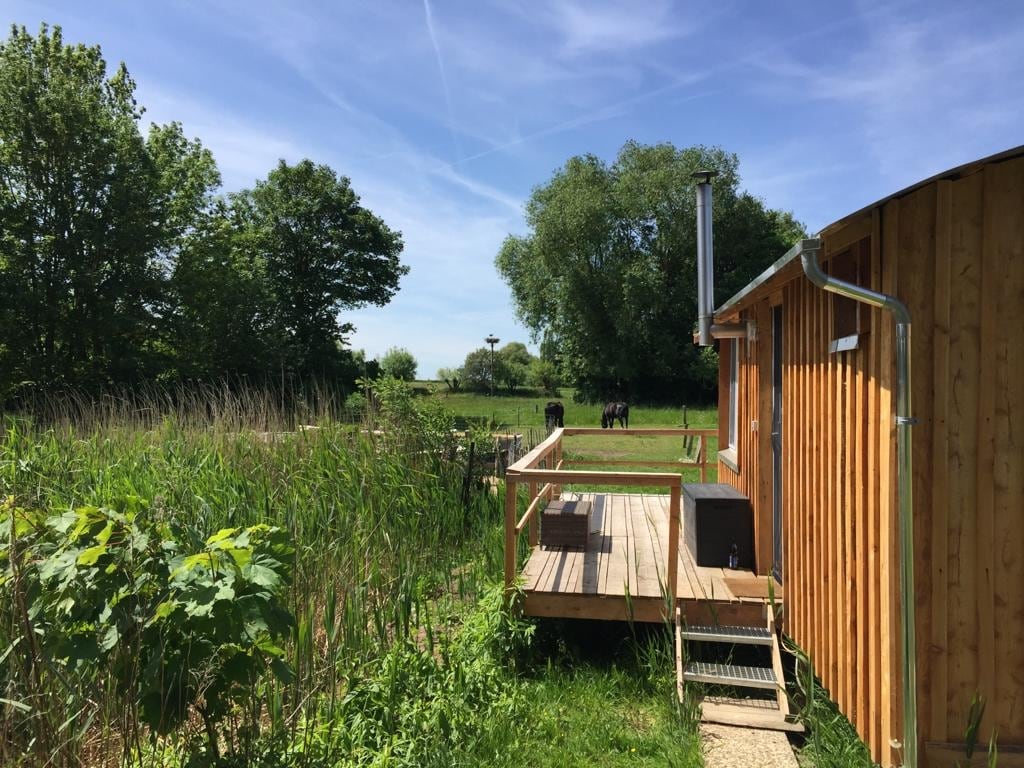 Am Rand einer kleinen Hofanlage, umgeben von Pferden, Hühnern und einem Storchenpaar, liegt unser funktionales Tiny House. Die große Sonnenterasse mit Sonnensegel, der anliegende Teich und der freie Blick in die Natur laden zur Entspannung ein. Zur Innenausstattung gehören: eine gemütliche Sitzecke mit Sofa, Tisch und Stühlen, ein Holzofen, eine kleine Küchenzeile, eine Schlafkoje (1,60 breit) und ein kleines Duschbad. Draußen angebaut ist ein Toilettenhäusschen mit finnischem Kompostklo.
