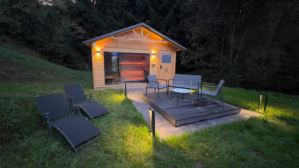 带热水浴缸和芬兰桑拿的浪漫小木屋
