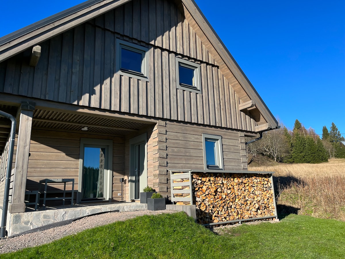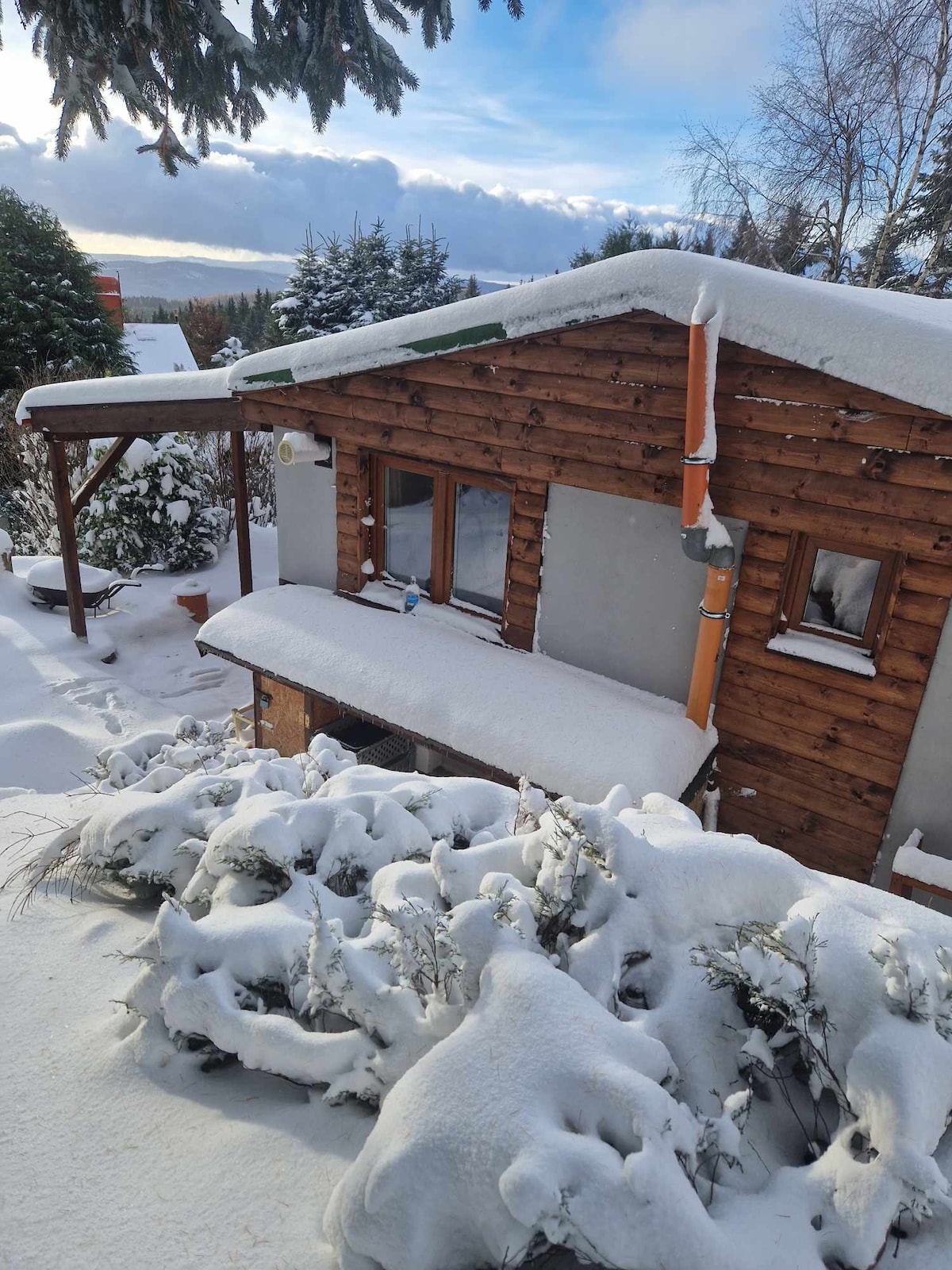 Moderní stylová chata v nádherné horské vesnici v Krušných horách. Vlastní koupací sud s vířívkou - vytápění dřevem. Za příplatek (450 Kč na den (20€)). V případě 4 a více dní sleva na 300 Kč na den (13 €)). Neomezené užívání. 15 minut autem do lyžařského areálu Klínovec. Terasa se střechou. Chata má vlastní zahradu. Je chráněna ze tří stran stromy. Topení možné pouze v krbu. Pokud chcete parkovat u chaty když je sníh, je nutné mít auto 4x4 ( chata není u hlavní cesty).
