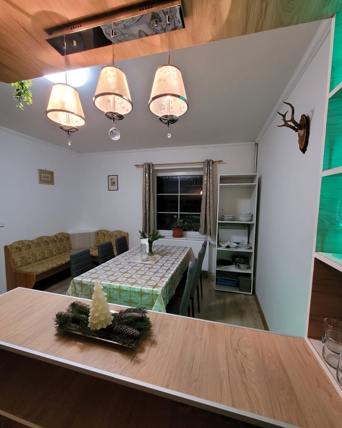 Vítejte v útočišti na okraji vesnice, kde se rodinný dům snoubí s klidem lesa a nádherným výhledem. U nás najdete perfektní rovnováhu: Pro chvíle klidu:Relaxujte u praskajícího krbu nebo si jen užívejte ticho v přírodě. Pro zábavu (nejen) pro dospělé: Dejte si do těla na běhacím pásu, užijte si filmový večer díky domácímu promítání a skvělému zvuku, nebo si večer zpříjemněte vodní dýmkou Pro děti (i hravé dospělé):Čeká tu na vás herní konzole Xbox, která zaručeně zažene nudu.