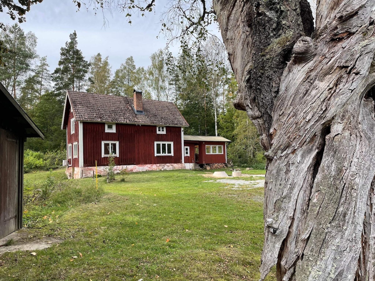 Sjöstugan- vår pärla precis vid sjökanten! Eget hus med sovloft, kök, vackert stort rum med braskamin och utsikt över sjön. Vedeldad bastu med dopp i sjön precis intill. Spabad på bryggan- alltid varmt. Badbrygga 5 meter utanför dörren. Tillgång till båt. Om ni vill köpa fiskekort, kontakta värd. Ved till baskamin och bastu ingår. Gården är inhägnad hela vägen till sjön och vår Beagel hund Vide är ofta lös ute. Han är snäll. Lakan, handdukar och städning ingår.