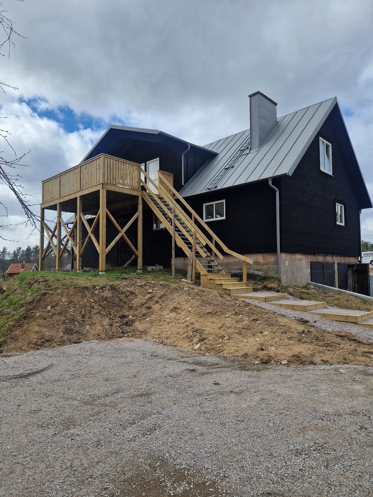 Kick back and relax in this calm and stylish space. Our tiny house is located in the corner of our garden with beautiful surroundings. It has a spacious loft with two beds, a bedroom with a family bed and a working area and a fully equipped kitchen. Outside there is a fire pit, a grill and a dining table to enjoy views of both fields (with deers) and forest. The sea is reachable by a short walk (5 min), where you can find a beach with a jetty.
