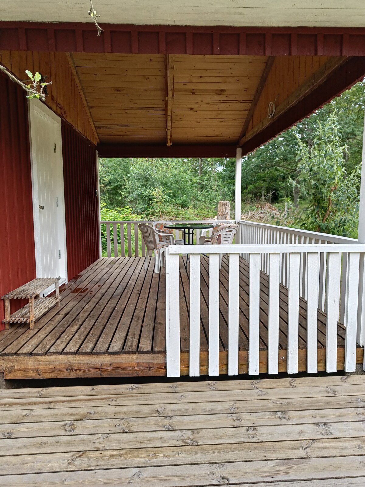 Koppla av i detta fridfulla boende. 100% semester! Vi sköter tvätt och städ. Bäddade sängar väntar på er ankomst. Kickstarta avslappningen? Boka en Medicinsk Massage på plats. Nära till hav, svampskog, badklippor och öns natur. Från altanen ser man dagligen rådjur. Tillgång till privatägd badstrand, nära till kommunal badplats. Badrum med vanlig toa och dusch. Ni kan låna vår grill och cyklar.