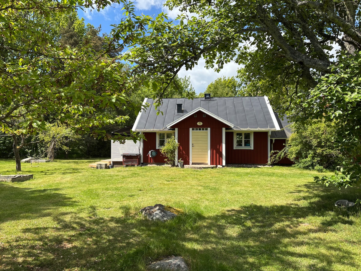 Välkommen till vårt charmiga hus som ligger på gården bredvid vårt eget hus. Bara 25 minuter med bilfärja ut i Karlskronas fantastiska skärgård. Huset på 50 kvm erbjuder bekvämligheter för fem personer. Fem bäddar, varav en dubbelsäng. 200 meter till en underbar badplats. ICA-butiken och färjan inom gångavstånd. Njut av sol och hav, eller ta en skogspromenad. Lugn atmosfär och närhet till natur. Välkommen till vårt paradis!