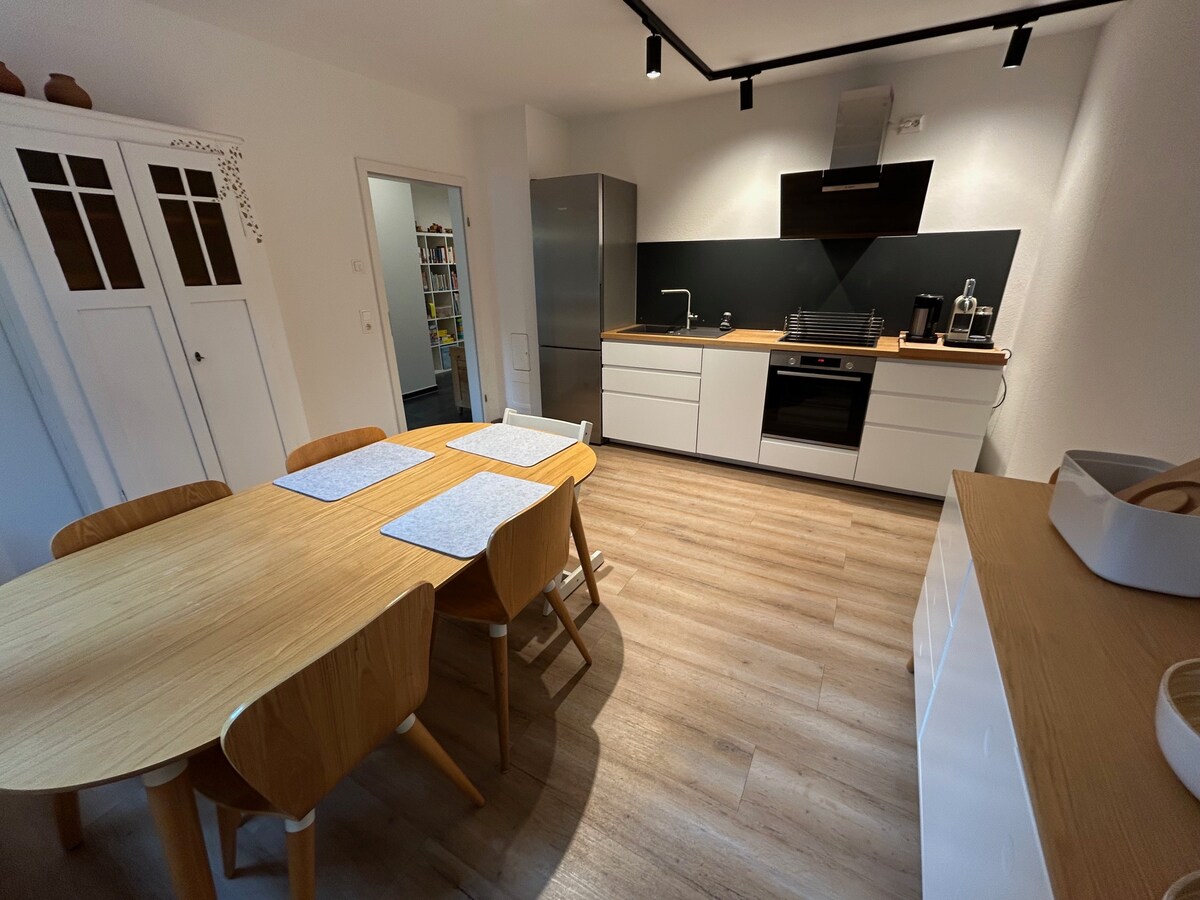 Central, historic, individual & spacious: Welcome to our beautiful 85m² maisonette apartment in the middle of the picturesque old town of Ettlingen. It is part of a listed building that has existed since the 17th century. You will sleep where stablehands and coachmen stayed over 200 years ago. It has been lovingly renovated. Discover the original charm of the sandstone wall and wooden beams, combined with the aesthetics of a bright loft with an open-plan concept.