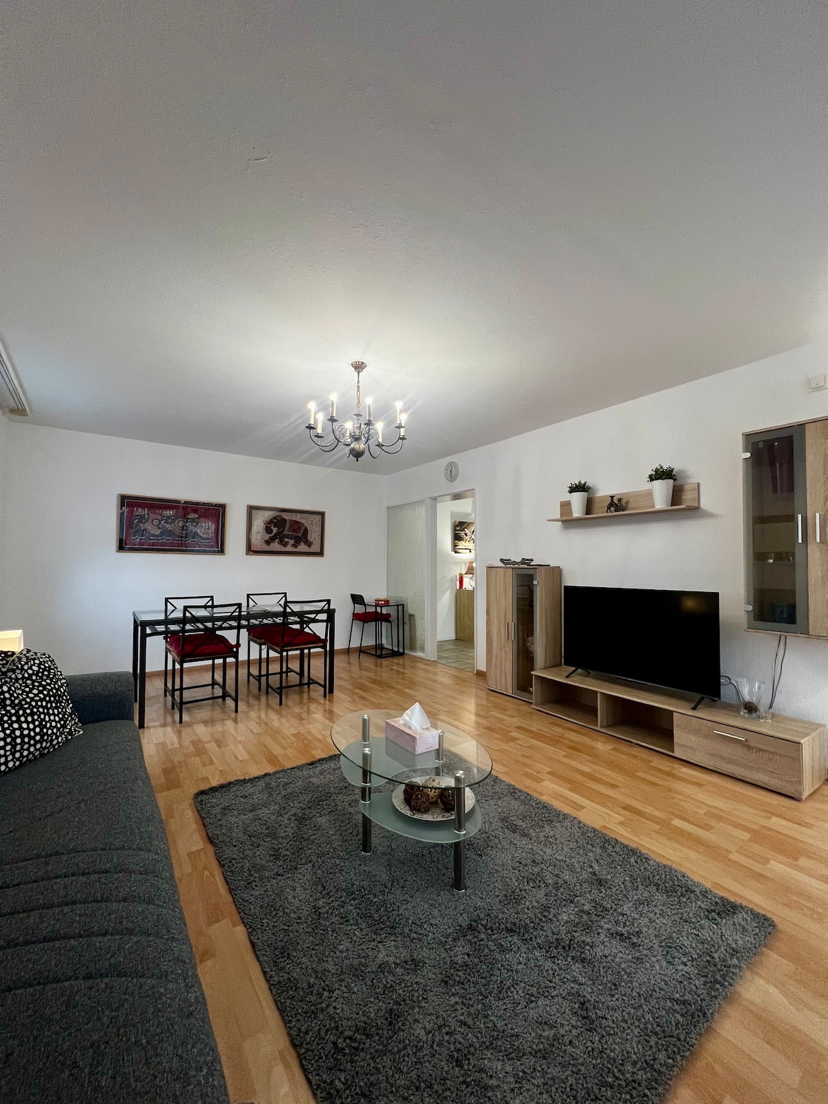 Herzlich Wilkommen in unserer stilvoll eingerichteten Wohnung. Sie ist voll ausgestattet und bietet mit einem Doppelbett, zwei Einzelbetten und einer Schlafcouch Plaz für bis zu 5 Personen. Die Küche ist voll eingerichtet und kann nach Bedarf genutzt werden. Sie zeichnet sich außerdem durch die Nähe zum Flughafen Baden-Airpark aus und ist gut an die öffentlichen Verkehrsmittel angebunden. Die Umgebung bietet außerdem verschiedene Freizeitmöglichkeiten.