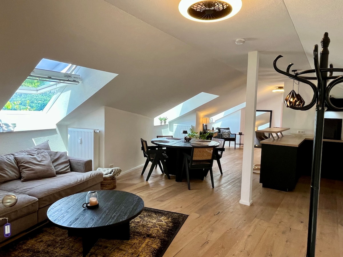 Diese stilvolle Unterkunft eignet sich perfekt für 2-3 Personen Unsere Superior Suite Nr. 10 im Dachgeschoss ausgestattet mit einem Massage Sessel 🛋️ Hat einen ganz romantischen & gemütlichen Flair, sie verbindet einen modernen & zeitlosen Wohnstil, den sowohl Jung und Alt miteinander verbindet & erfreut. Es gibt 2️⃣ Fernseher 🖥️ im Wohnzimmer & Schlafzim Der Ausblick über das Städtchen Bad Liebenzell und auf die Burg, die gegenüber liegt, hat man von der Wohnung sowie auch vom Balkon!