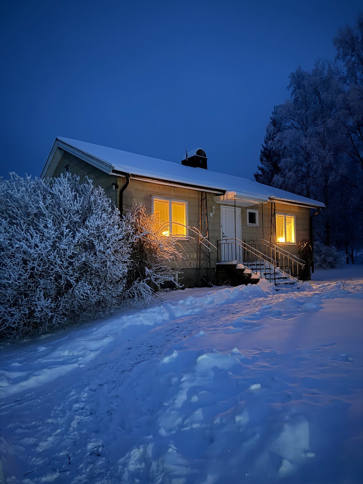 House 40 meters from lake Vänern. Completely renovated during 2018. A small boat can be used by the guest. (not during november-april due to ice) Equipped with all modern things like AC, fiber internet, etc. There is one double bed in the main bedroom. In the guest room there is 2 beds. An inflatable bed could be used if you need more beds. There is also a small guest house with a room. You can relax, take a swim or walk in the forest. It’s as relaxing during summer as during winter.